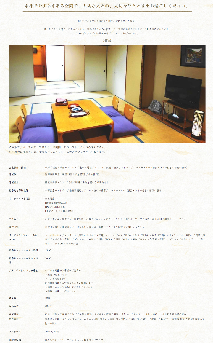 ※子供料金(未就学児以下)や入湯税、追加料金、館内追加サービスは、現地現金にて直接お支払ください。