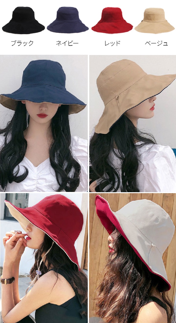 つば広リバーシブル シンプルハット(あご紐付き)【送料無料】 (大きなつばがおしゃれ♪ 暑い季節でもおしゃれを楽しみたい方に) ※クーポン発券完了後【配送先登録フォーム】への登録が必要です!※