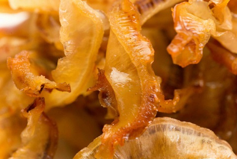 【原材料名】帆立貝ヒモ(国内産)、砂糖、食塩、ブドウ糖、たん白加水分解物(小麦・大豆を含む)、ソルビトール、調味料(アミノ酸等)、酒精、酸味料、リン酸塩(Na)、保存料(ソルビン酸K)、カラメル色素、甘味料(ステビア)