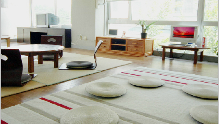 ・2階には、大画面液晶テレビやパソコンを完備。このフリースペースはごろ寝もできる♪