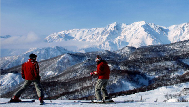 四季を感じることのできる信州・栂池姫川温泉とゲレンデに面しているレストランのガラス張りから