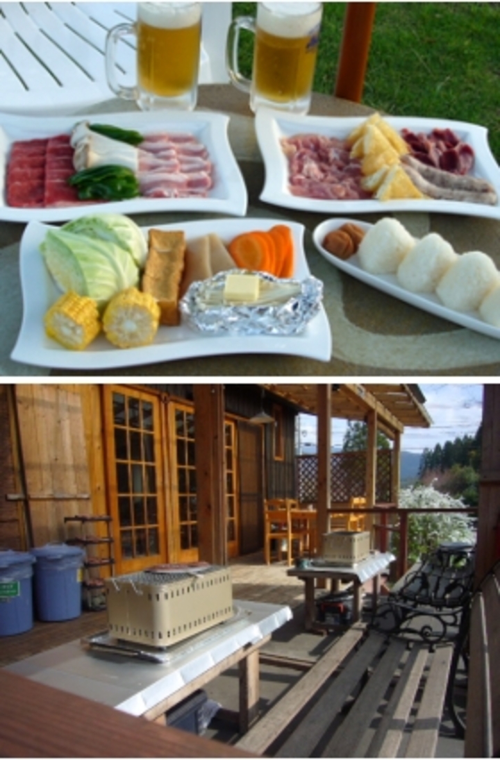 貸別荘専用に建てられた総木造りのメゾネットです。1F12畳リビング・6畳ツインベッドルーム・2F10畳和洋室に専用の天然温泉桧風呂とバーベキューテラスがついています。