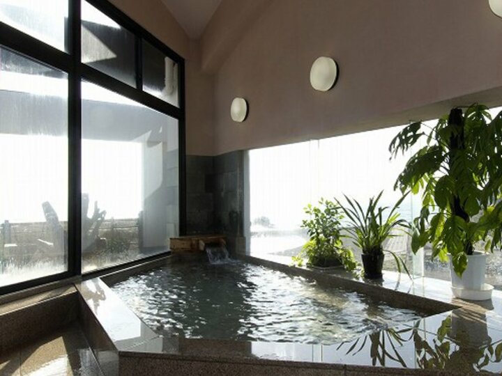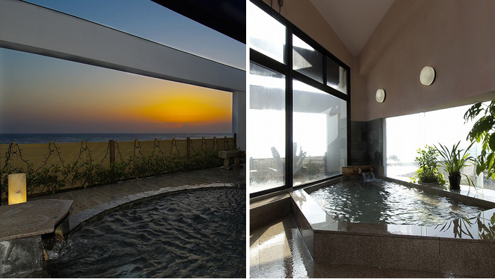 最上階にある展望露天風呂は究極の絶景。掛け流し天然温泉につかりながら見る夕日は最高の贅沢。余りの素晴らしさに、また足を運びたくなります。