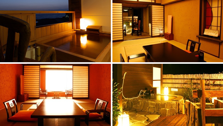 ◆夕日はホテル最大の魅力であり、全客室オーシャンビュー。しかも14室は露天風呂付客室になっています。