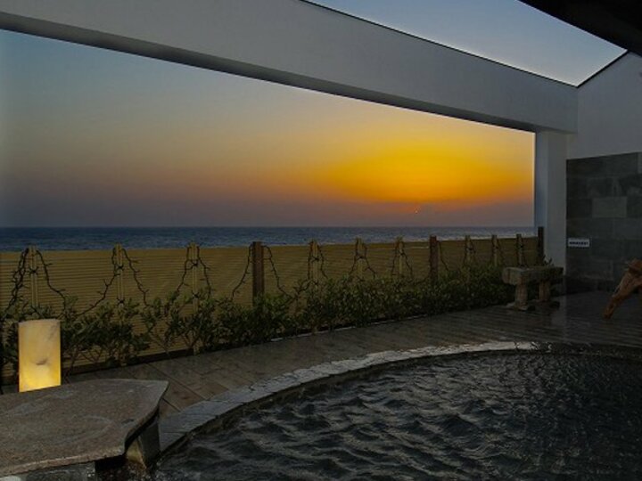 ◆「金波をのぞむ空中温泉 ホテル雅」は目の前に白い砂浜、近くには旅人岬、土肥温泉の代名詞とも言うべき夕日を一望できる最高のロケーションに位置する和モダンのホテルです。
