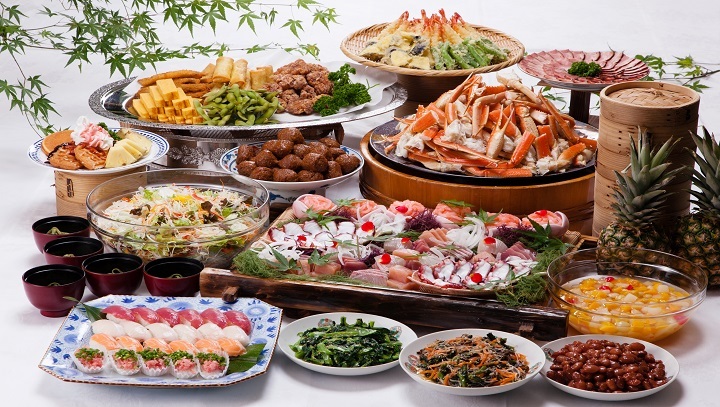また、新鮮な海の幸、和洋中の豊富なメニューをバイキングで堪能。