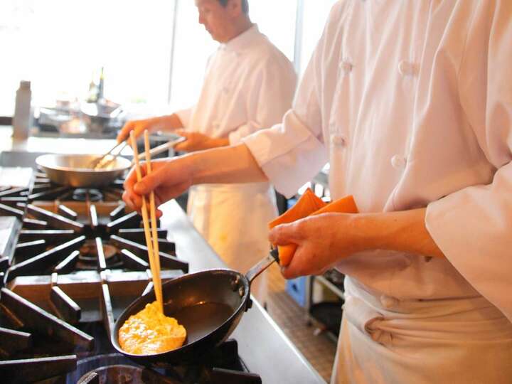 目の前でシェフが作るふわふわオムレツ、いも煮や玉こんなどの郷土料理、季節ごとに家庭で食されるお漬物など、山形ならではのメニューを豊富に揃えております。