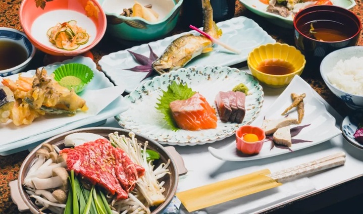 お食事は、飛騨牛を中心に、山の恵みを生かした郷土料理と山菜料理をご用意しております。