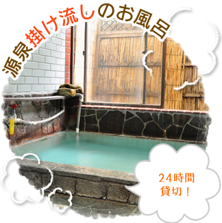 お風呂は24時間貸切入浴できる掛け流しの天然温泉で、草津のお湯を一人じめ。