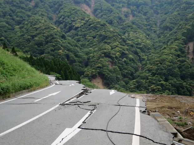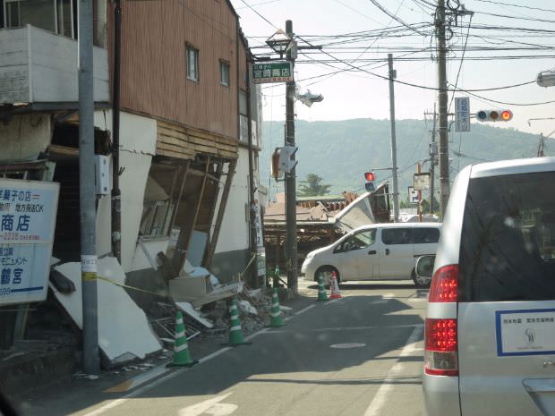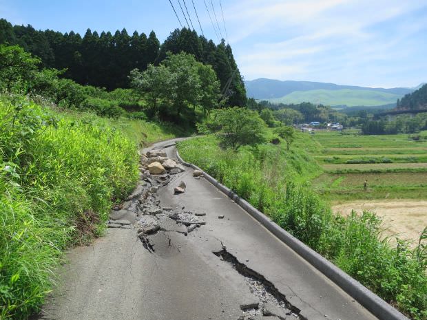 崩壊した阿蘇大橋の近くの立野地区迄は通行できましたが、道路が寸断されており、南阿蘇村役場まであと14キロ地点で通行止め。仕方なく熊本空港の近くの大津町まで戻って、30キロ以上も遠回りし、やっと南阿蘇村役場に到着しました。