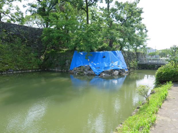 途中、熊本市内から40キロ地点にある八代城にも立ち寄ってみましたが、石垣の一部が崩れており、ブルーシートが掛けられており被害地域の広さに驚きくばかりです。