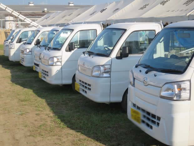 駐車場での車中泊は禁止との事でしたが、恐らく他の場所で車中泊した人達もいらっしゃったのか、車の中にはキャンプ道具一式を車に積み、炊事まで出来る様で、大変な意気込みの方々も多く見られました。